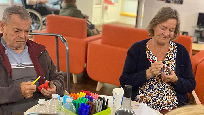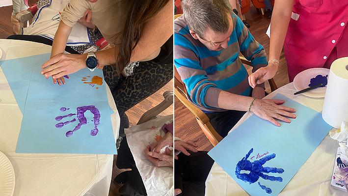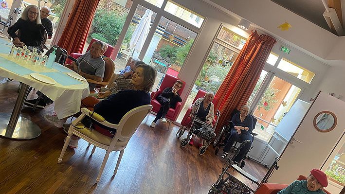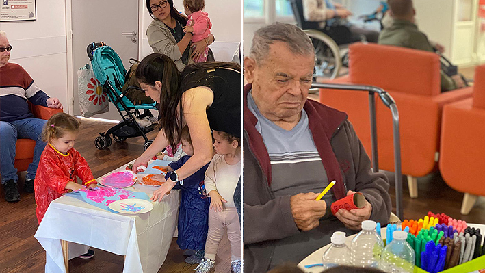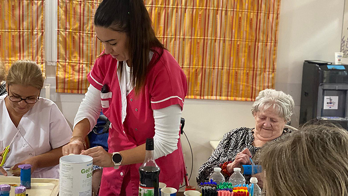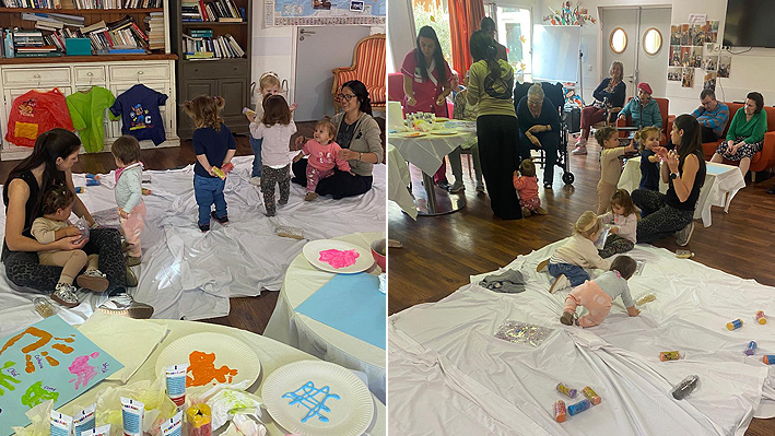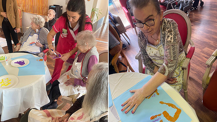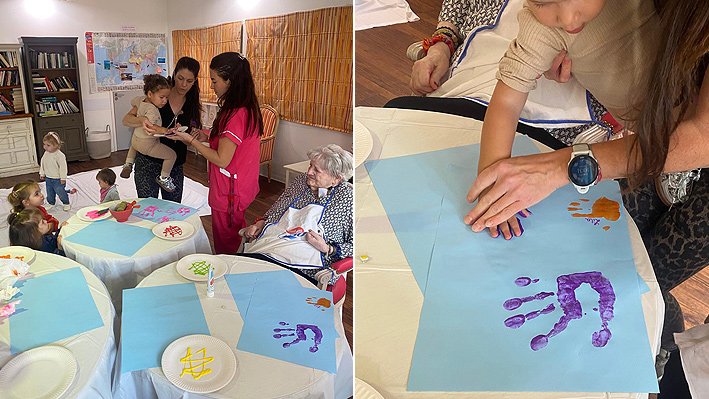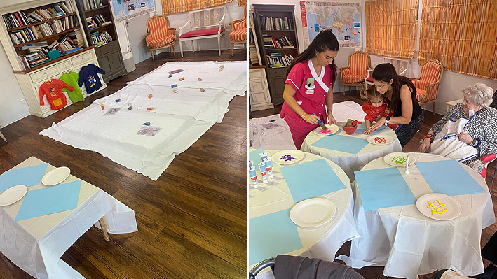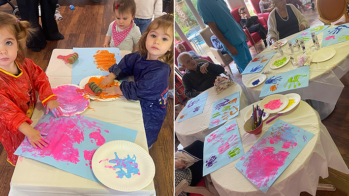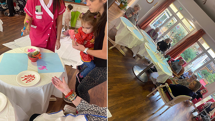 Un très beau moment intergénérationnel avec les assistantes maternelles de Pégomas. Fabrication de jouets par les résidents de la Bastide de Pégomas Moment de peinture partagé.